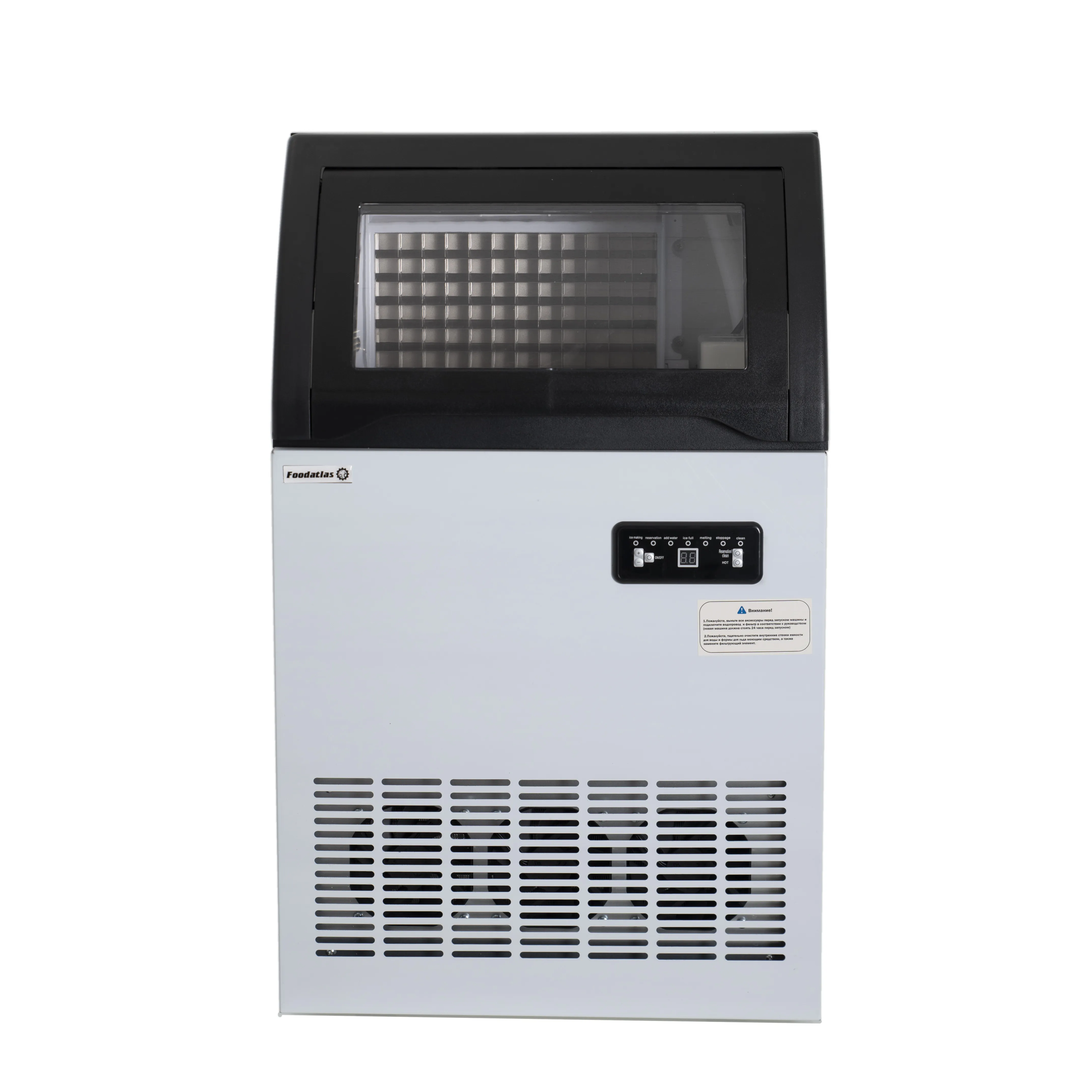 - Тип льда: кубиковый лед, который подходит для напитков, коктейлей и охлаждения продуктов