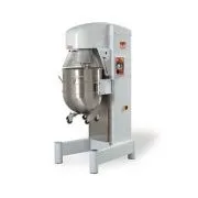 Планетарные миксеры больших размеров. Изменение скорости посредством инвертора. Электрический подъемник дежи с двойным цепным приводом. Дежа из нержавеющей стали, на колесиках Инструменты из нержавеющей стали (спираль, венчик, лопатка). Съемная защитная решетка, облегчает чистку. Встроенный таймер.