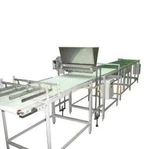 Конвейер намазки предназначен для автоматизации нанесения начинки наверх кондитерских коржей(квадратной или прямоугольной формы) с последующим переходом на конвейер сборки.